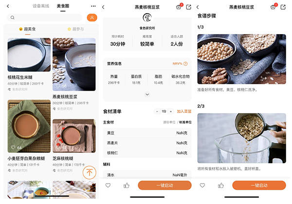 打开美的美居APP , 美食圈里选择“蜂蜜柳橙汁”食谱 , 按照食谱食材配比放入食材 , 在手机上点击“一键启动” , 3分钟后一杯清爽可口的蜂蜜柳橙汁就做好啦 。