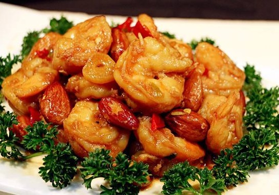 食材:大虾16只,花生米适量、葱半颗、姜3片、花椒粒适量、干辣椒少许,朗姆酒1大勺、淀粉少许、盐少许、白胡椒粉少许,生抽3小勺、醋3小勺、糖1大勺、料酒4小勺、水淀粉4小勺、盐1/2小勺、辣椒粉1小勺1.大虾洗净,在第三节挑虾线,去头去壳留虾尾,在背部划一刀(腹部就不要划了,不然大虾就不会弯曲了)。2.花生米洗净水泡后晾干油炸,或直接买来炸好的备用,用少量朗姆酒给虾去腥味,加入少量白胡椒粉提味儿。3.撒一些淀粉、抓匀,盖保鲜膜冷藏20分钟左右,锅里烧热油,倒入虾,大火急炒,虾身变色弯曲,盛出备用。4.花椒粒煸香后,用姜片和葱段炝锅,倒入调匀的宫保汁,大火烧开宫保汁,倒入虾球,倒入去皮炸好的花生,加入干辣椒,翻炒均匀即可盛出。香菇荷兰豆炒马蹄