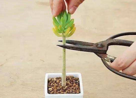 具体是怎么做啊,大家可以参照上面的切除部分步骤,也要有一把消过毒的小刀,循着土面以上的多肉部分,直接把化水的整个多肉的头全部砍掉,只留下一块健康的枝茎即可。