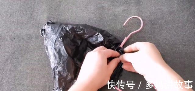 然后拿一个塑料袋绑在衣架上。
