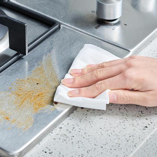需要说明的是,“防”只是一个方面,另一个方面是用湿纸巾做好清洁,因为它的特性是比较吸油,而且一次性的不会让你又回过头来清洗抹布!如此大大提高了家务效率!