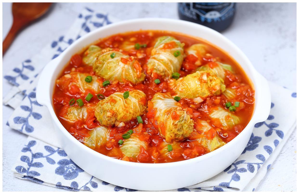 13.鲜美开胃的茄汁娃娃菜虾肉卷就做好了,专治夏天没食欲,赶快试试吧!